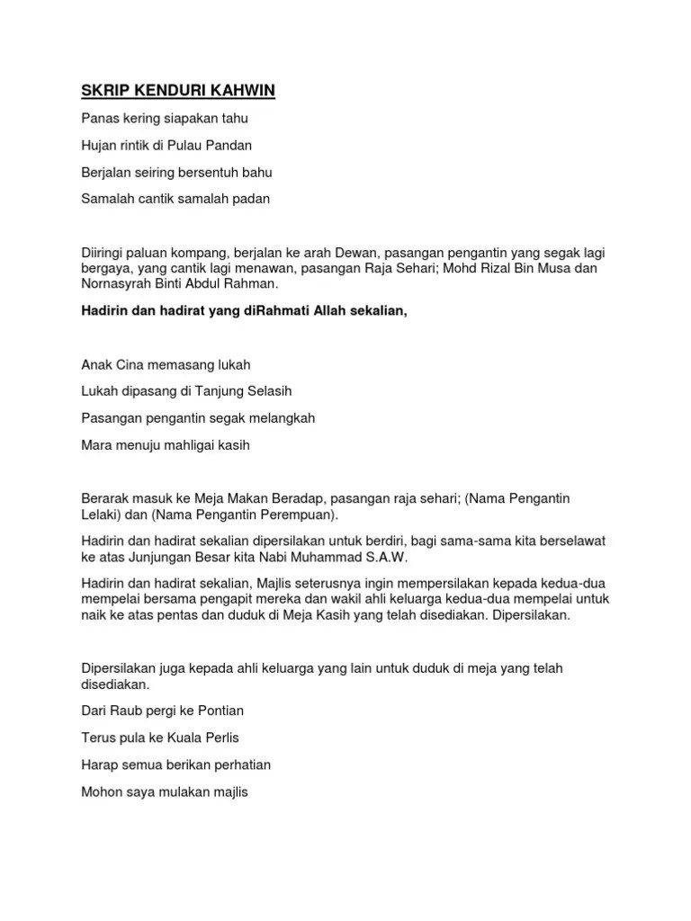 He began to convert people of the c Teks pengacara majlis perkahwinan islamik. Skrip pengacara · subhanallah pagi dan petang · assalamualaikum wrb dan salam sejahtera · panas dan kering siapakan tahu, · dengan langkah yang penuh tertib.